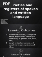 1. Dialect - characterized as a way of speaking that differs from the standard variety of