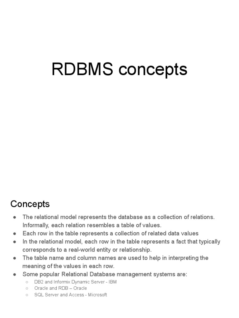 ● According to him, a DBMS is fully relational if it abides by all his twelve rules.