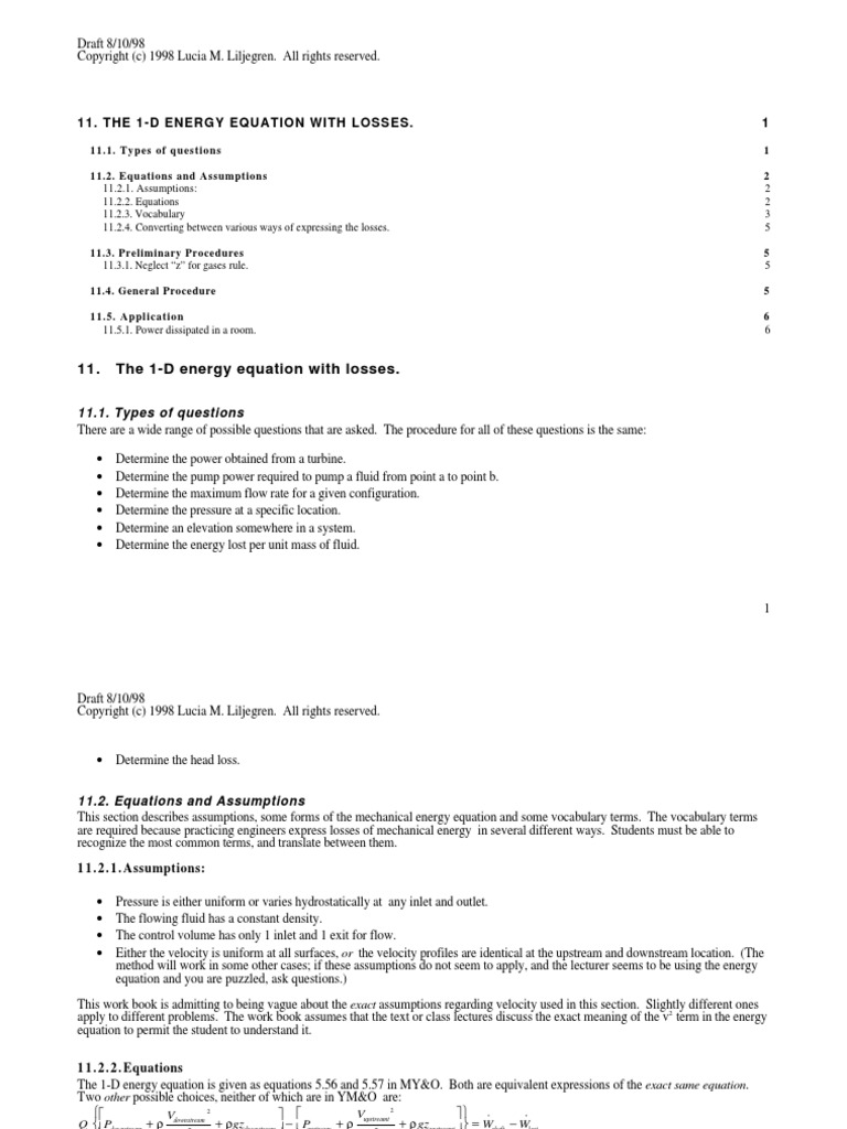 11. THE 1-D ENERGY EQUATION WITH LOSSES. 1