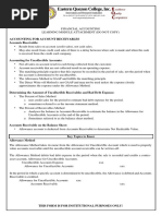 The document discusses using the allowance method to account for uncollectible accounts receivable, where the Accounts Receivable account is credited for the estimated amount of accounts that will be uncollectible from customers.