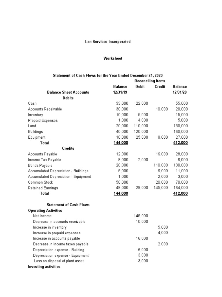 Statement of Cash Flows for the Year Ended December 21, 2020