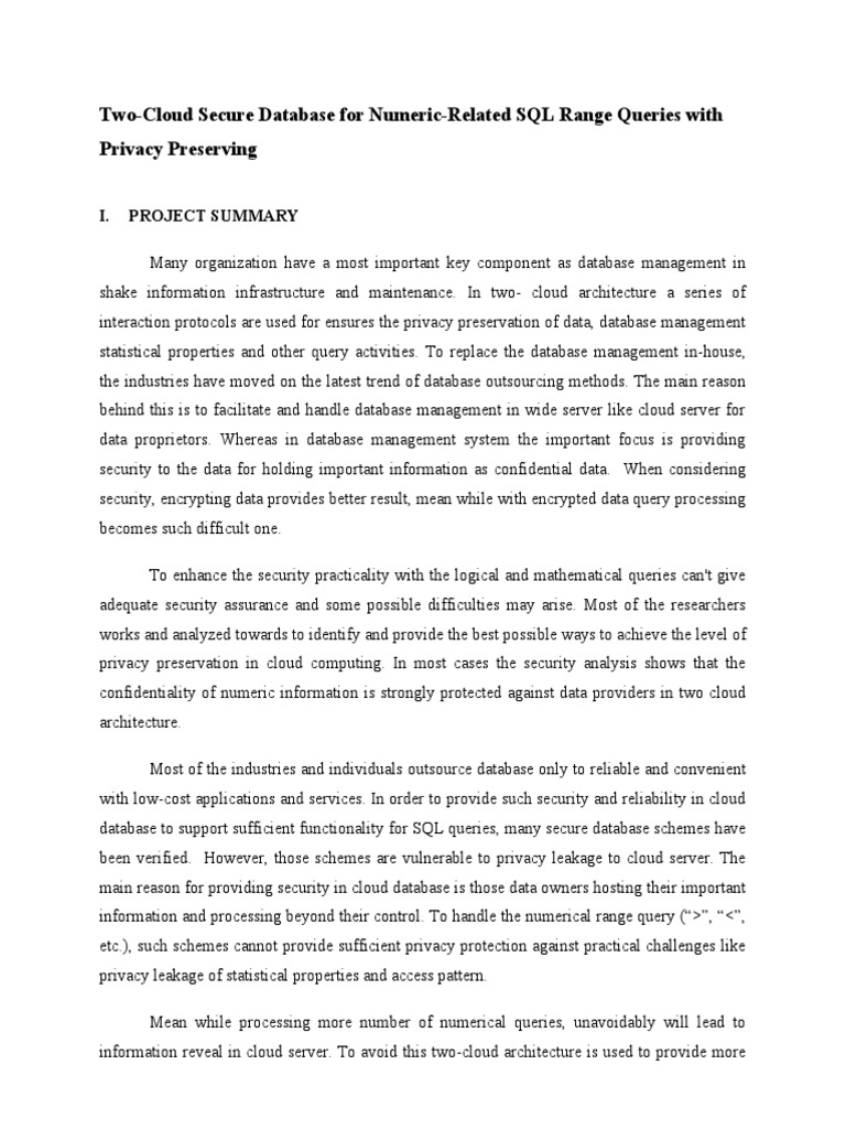 range of numeric-related queries. Security analysis in two cloud architecture shows that isolation