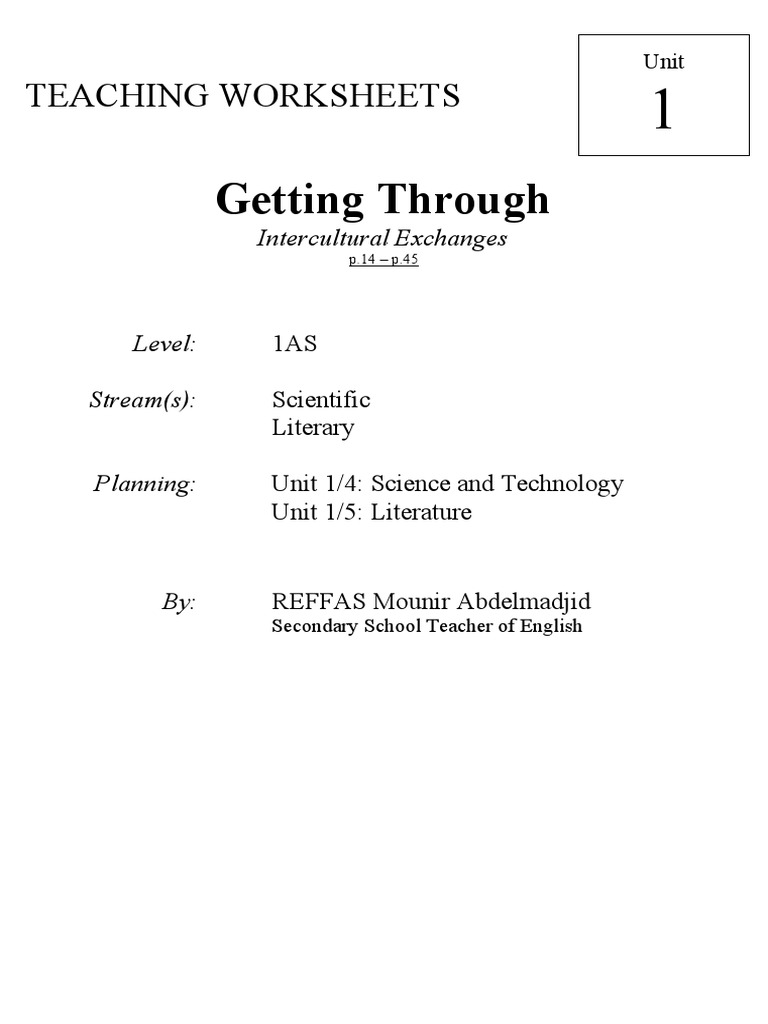 procedure runs in parallel with the unfolding of the unit. There are flash points throughout the unit: