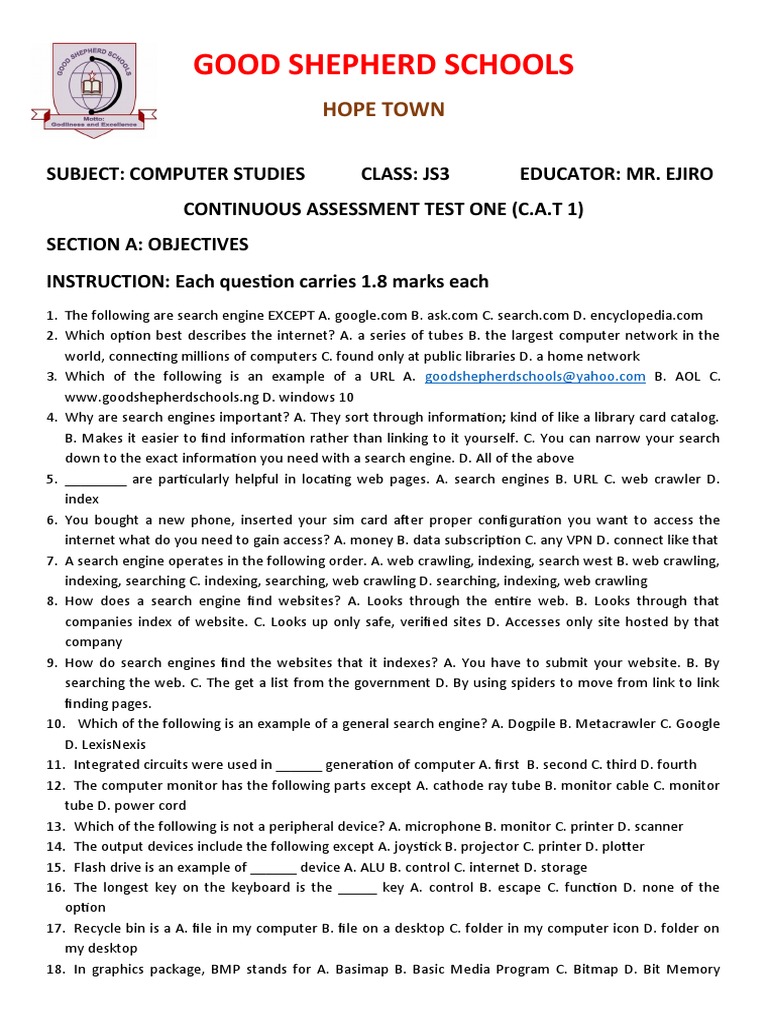 SUBJECT: COMPUTER STUDIES CLASS: JS3 EDUCATOR: MR. EJIRO