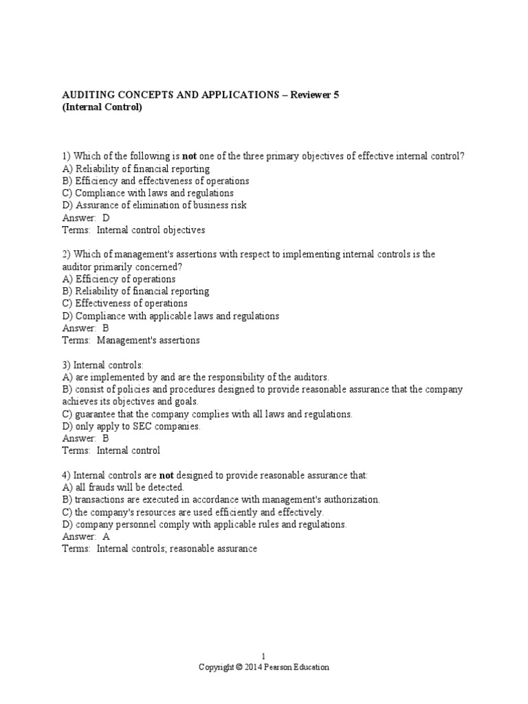Auditing Concepts and Applications - Reviewer 5 (Internal Control)