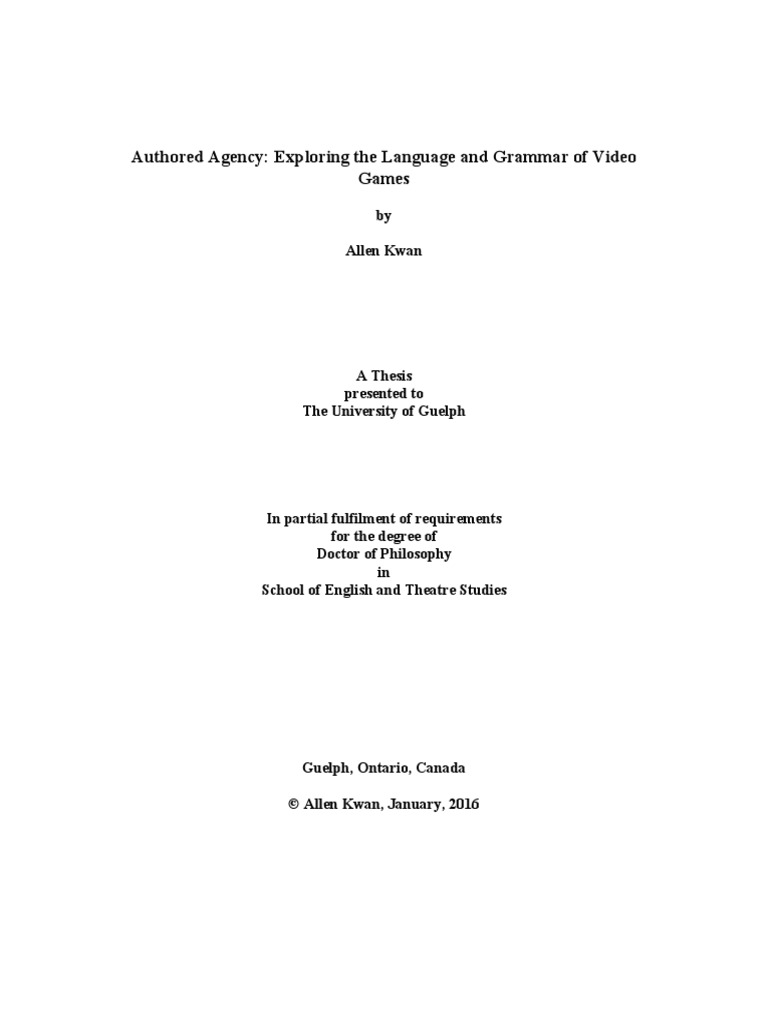 game and make the decisions that influence the outcome of a video game, this dissertation argues