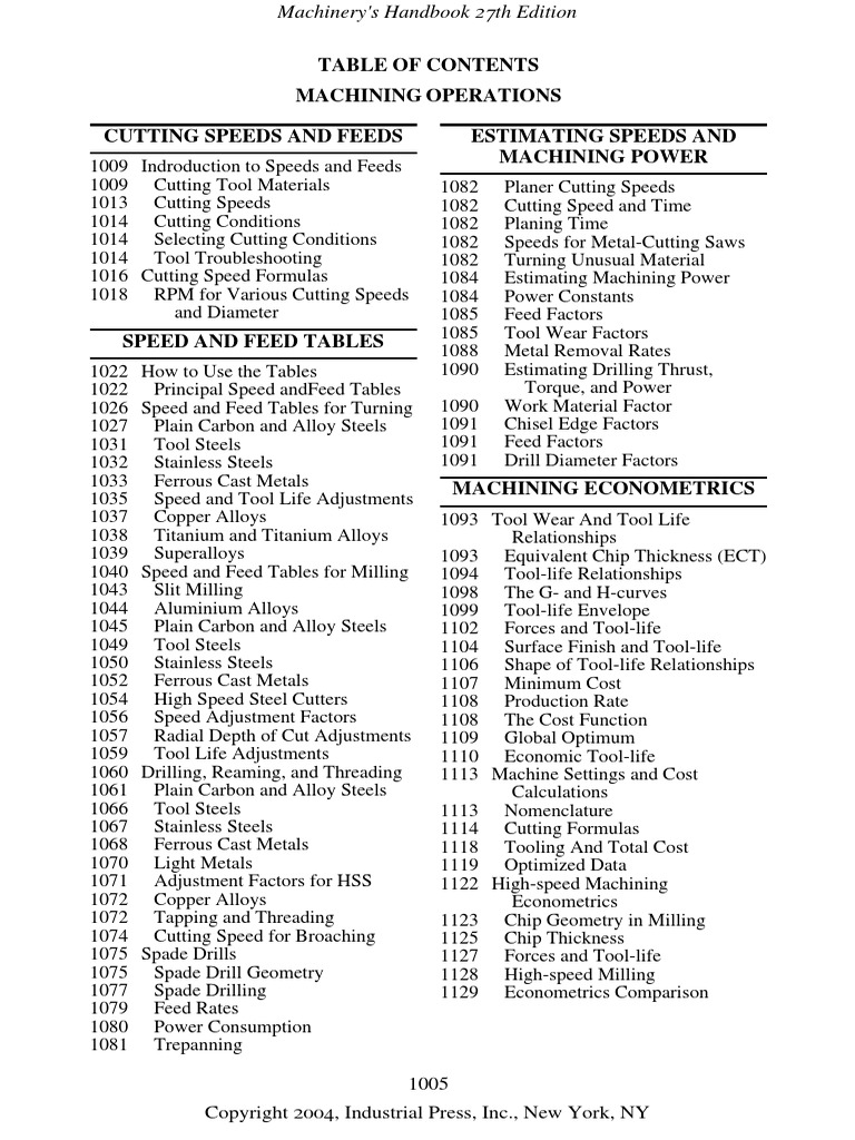 1132 Cutting Speeds and Feeds 1163 Spark-out Time