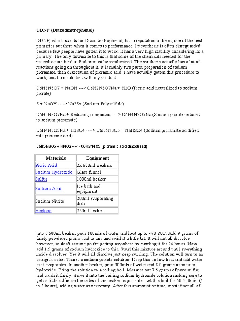 lot of it). This is picramic acid. Measure out 7.5 grams of sulfuric acid and add it to