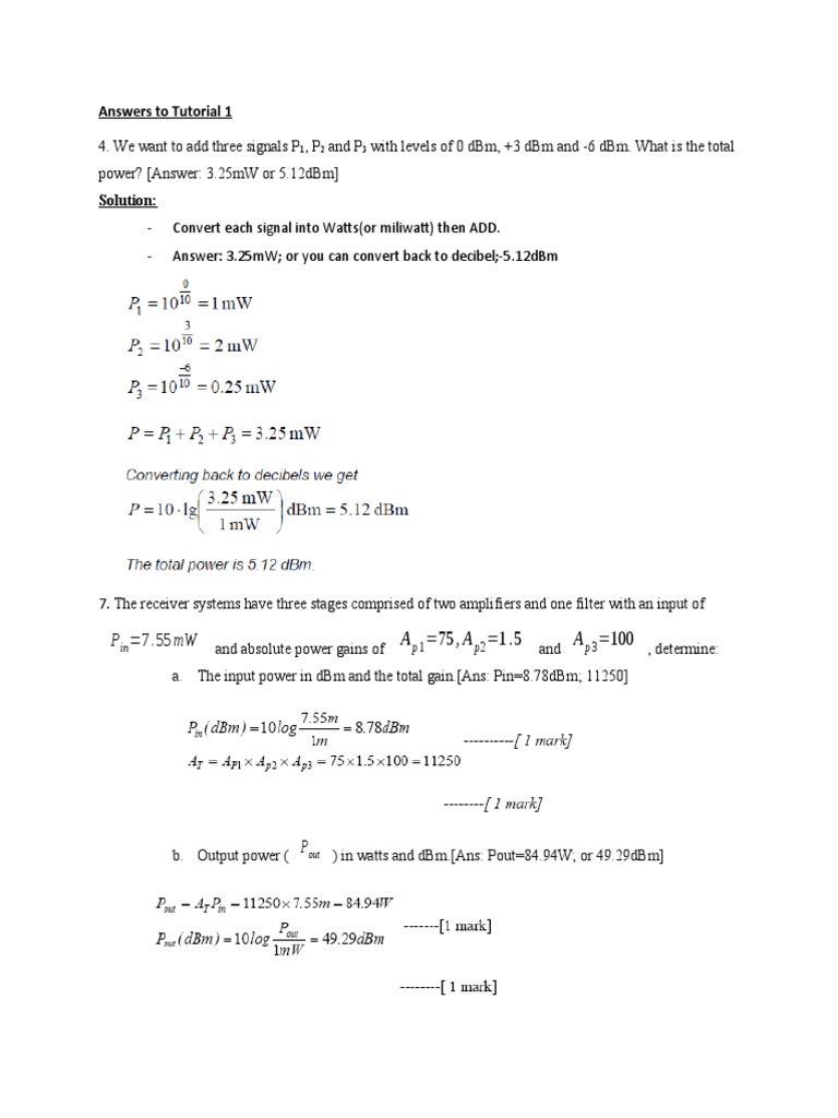 - Answer: 3.25mW; or you can convert back to decibel;-5.12dBm
