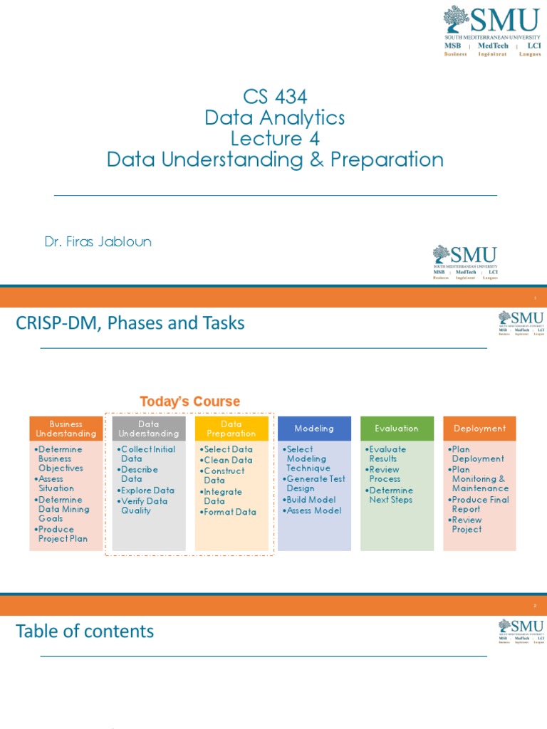 • Data understanding and data preparation (2nd and 3rd phases of CRISP-DM