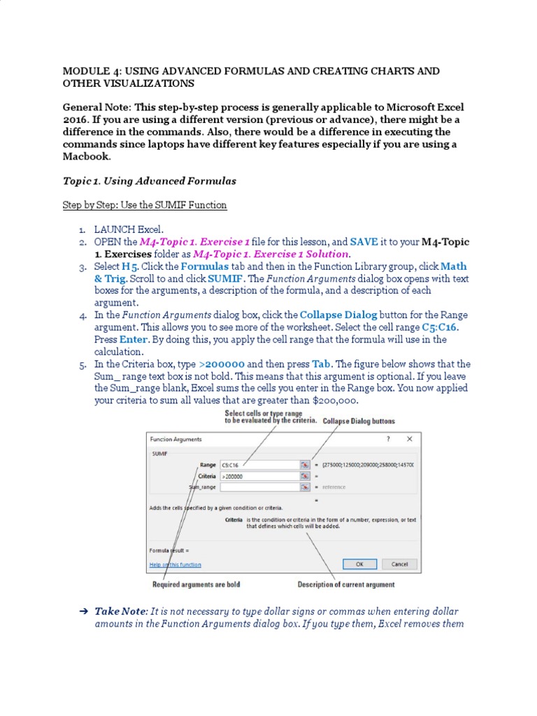 MODULE 4: USING ADVANCED FORMULAS AND CREATING CHARTS AND