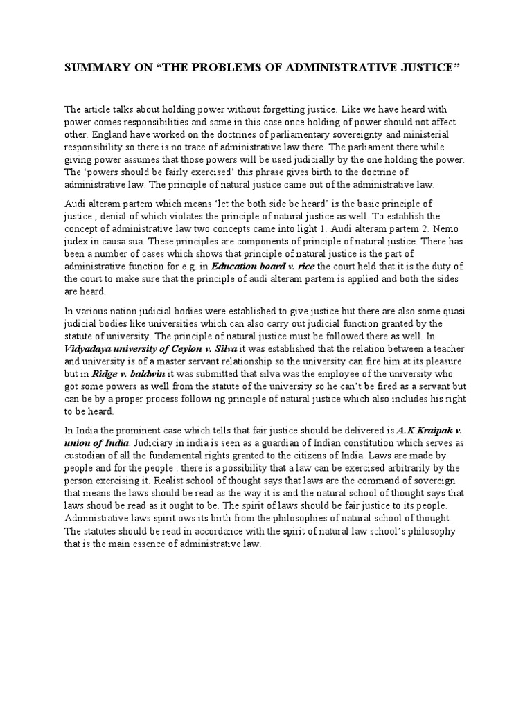 SUMMARY ON “THE PROBLEMS OF ADMINISTRATIVE JUSTICE”