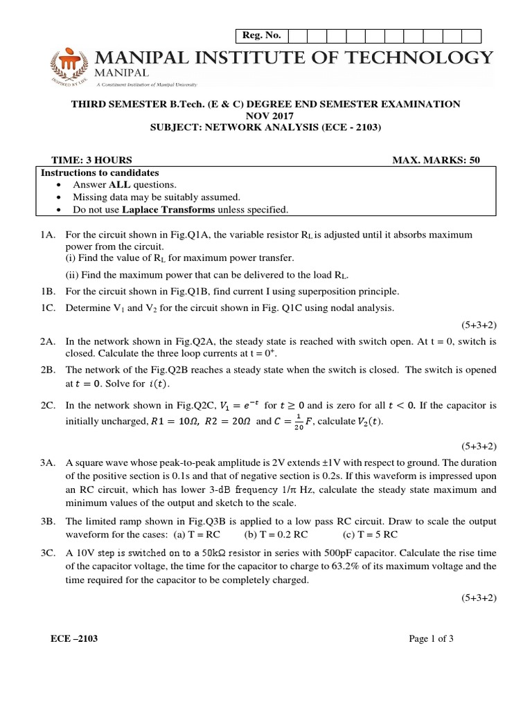 SUBJECT: NETWORK ANALYSIS (ECE - 2103)