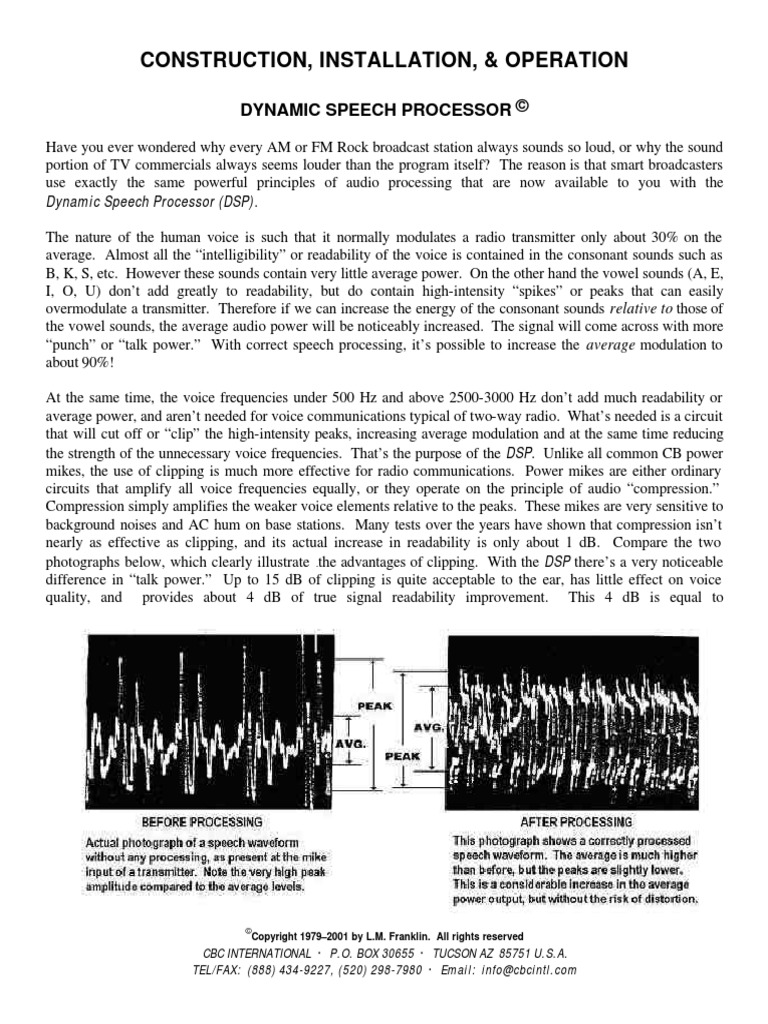 Construction, Installation, & Operation: Dynamic Speech Processor ©