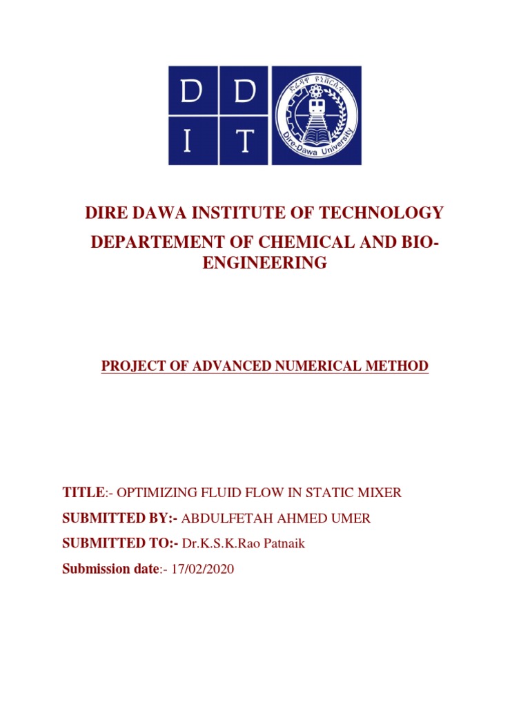 TITLE:- OPTIMIZING FLUID FLOW IN STATIC MIXER