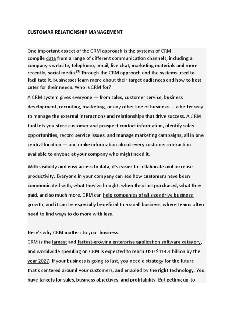 CUSTOMAR RELATIONSHIP MANAGEMENT