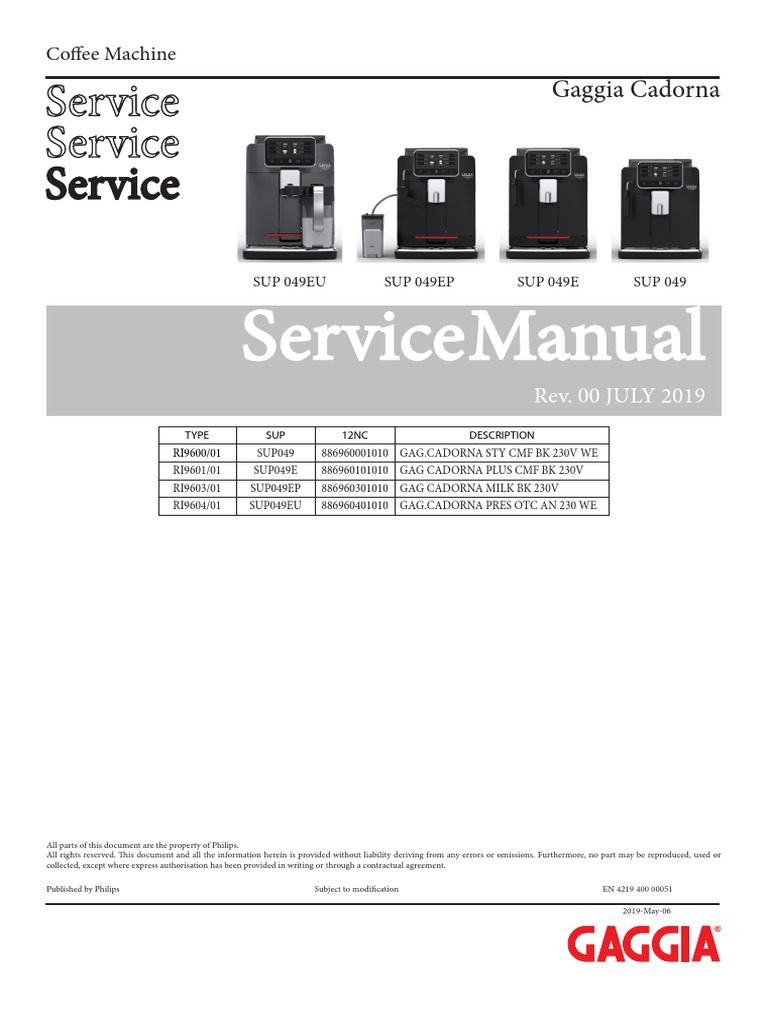 Gaggia Cadorna Plus Service Manual