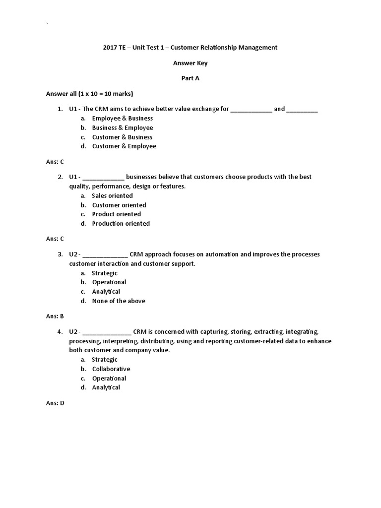 2017 TE – Unit Test 1 – Customer Relationship Management