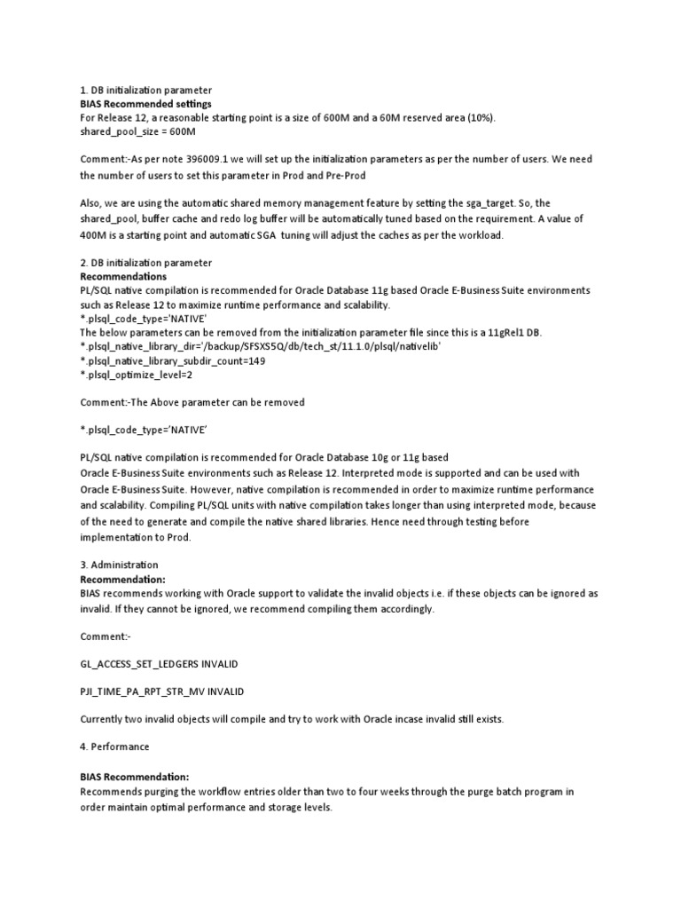 BIAS recommends working with Oracle support to validate the invalid objects i.e. if these objects can be ignored as