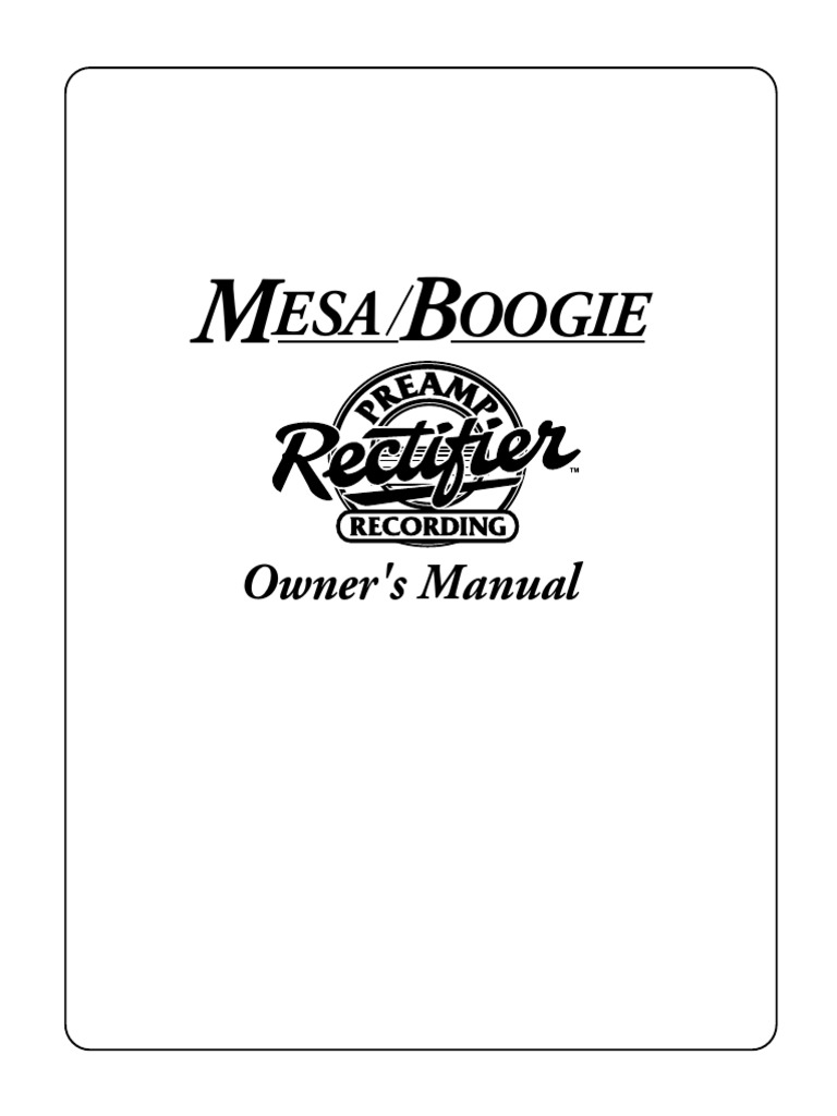 Congratulations on your choice of the Rectifier Recording Preamp and welcome to the Mesa/Boogie Family! This all-tube, two rack