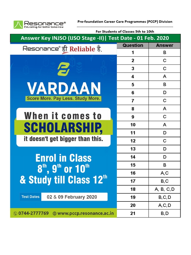 Answer Key INJSO (IJSO Stage -II)| Test Date - 01 Feb. 2020
