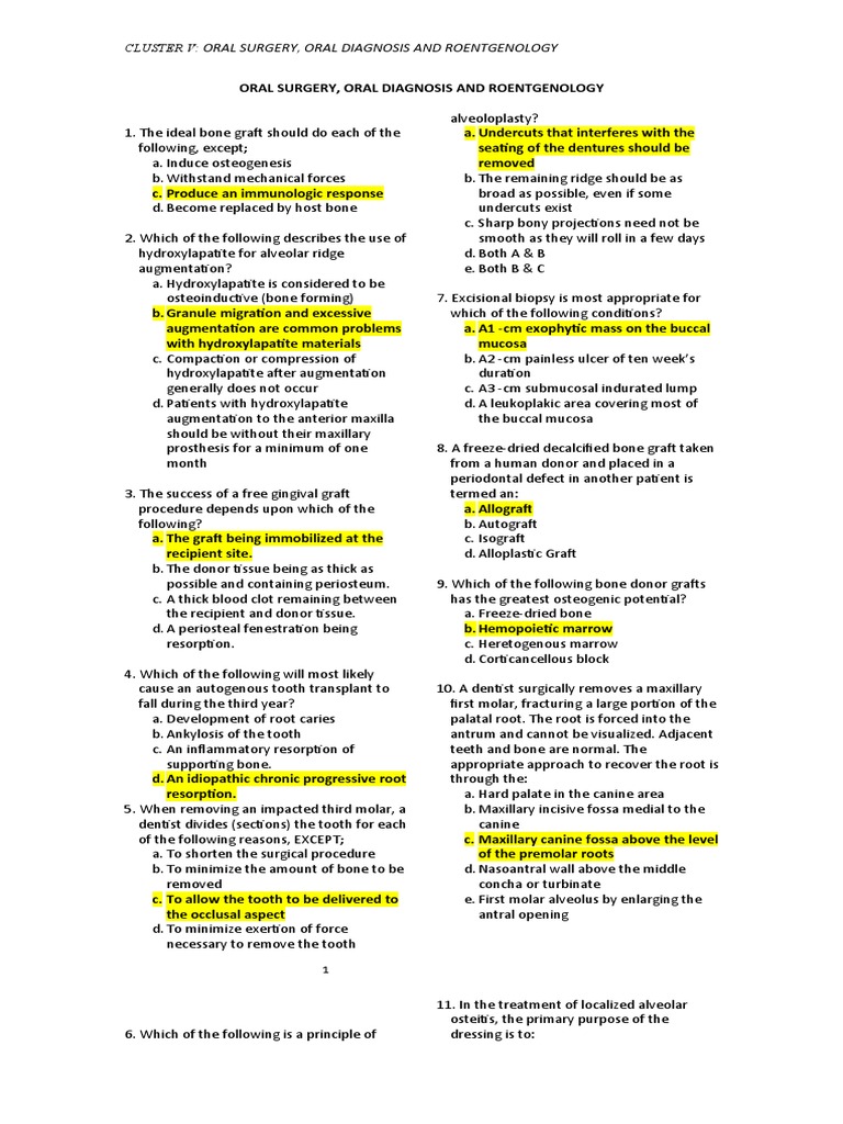 CLUSTER V: ORAL SURGERY, ORAL DIAGNOSIS AND ROENTGENOLOGY