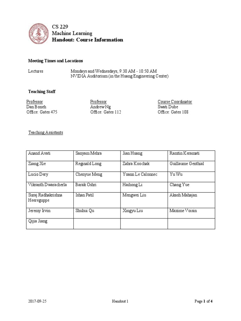 • Piazza forum http://piazza.com/stanford/fall2017/cs229