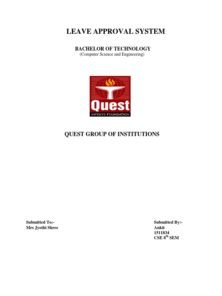 Existing System in a Quest Group Of Institutions of Engineering for Leave Management of their