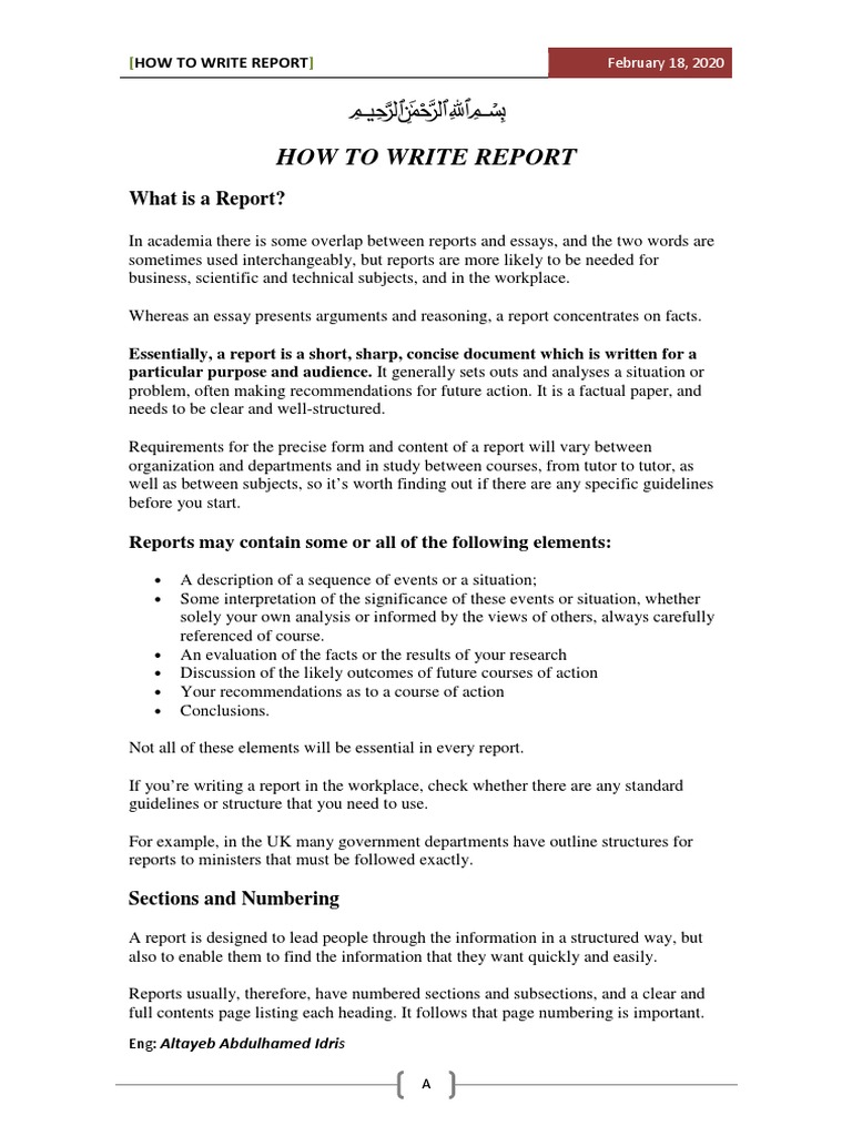 Reports usually, therefore, have numbered sections and subsections, and a clear and