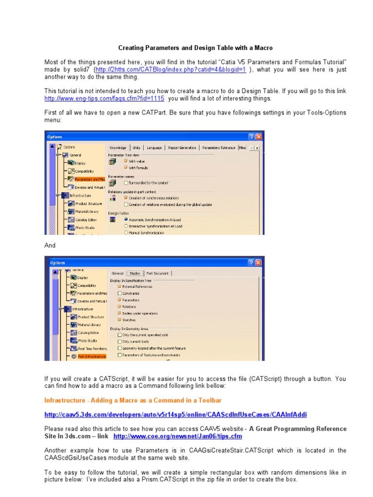 The zip file containing this tutorial, the CATScripts files and the Design Table (in txt format)