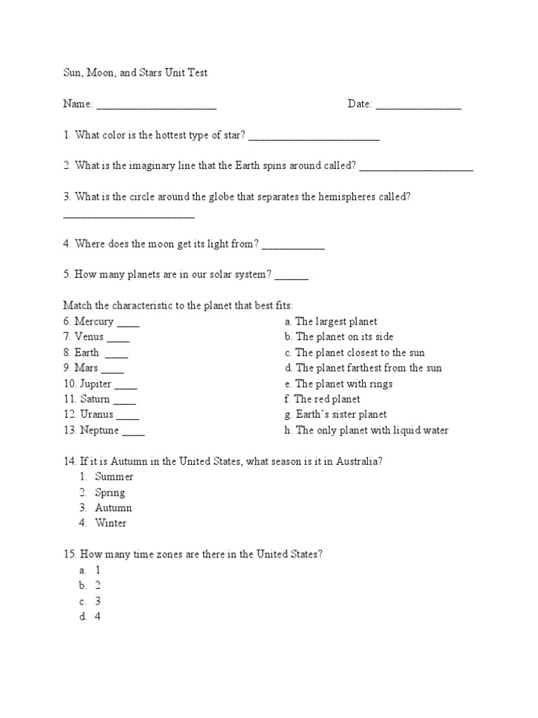 2. What is the imaginary line that the Earth spins around called? __THE AXIS___