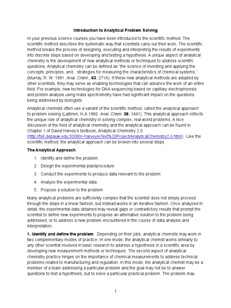 involved in answering the problem; therefore, analytical chemists must be adept in