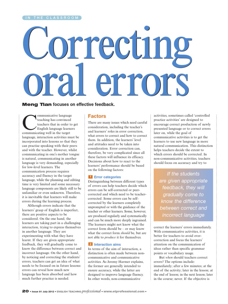 and with the teacher. However, whilst consideration. Error correction can, helps teachers decide the extent to
