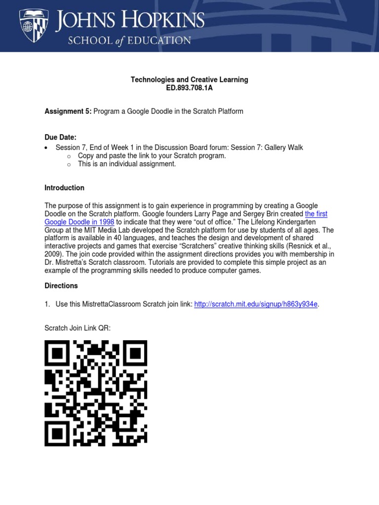Assignment 5: Program a Google Doodle in the Scratch Platform