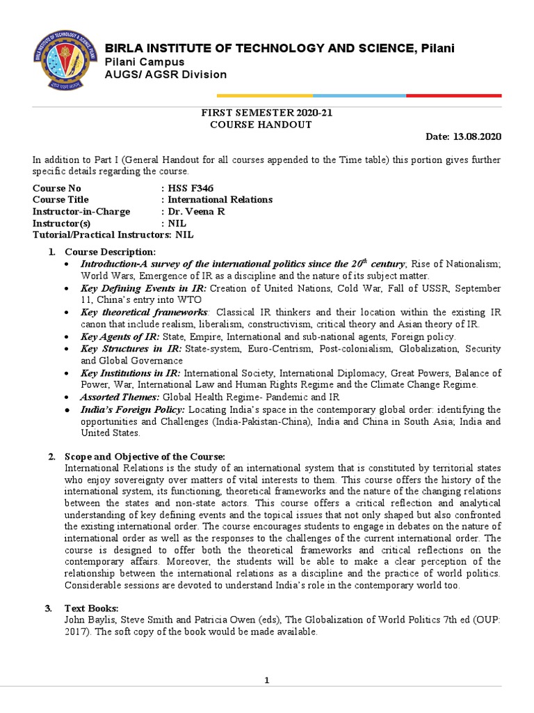 Course Title : International Relations