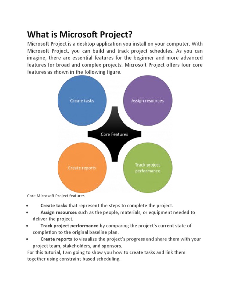 features for broad and complex projects. Microsoft Project offers four core