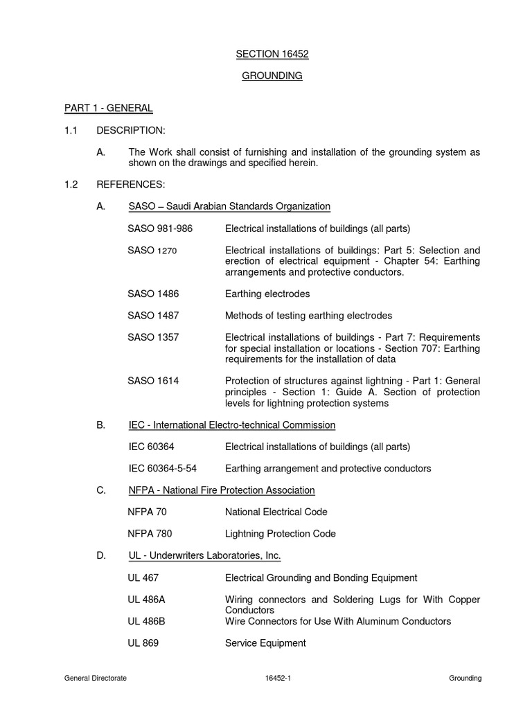 respects with SASO, IEC and IEE Regulations for Electrical Installations, latest