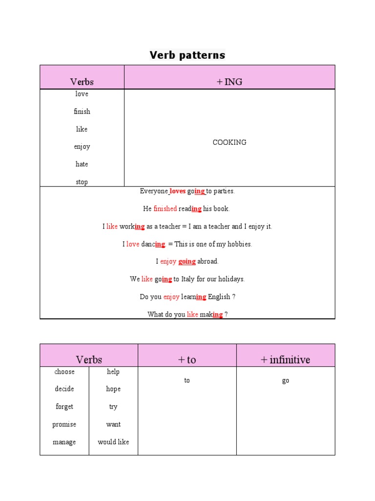 Verb patterns