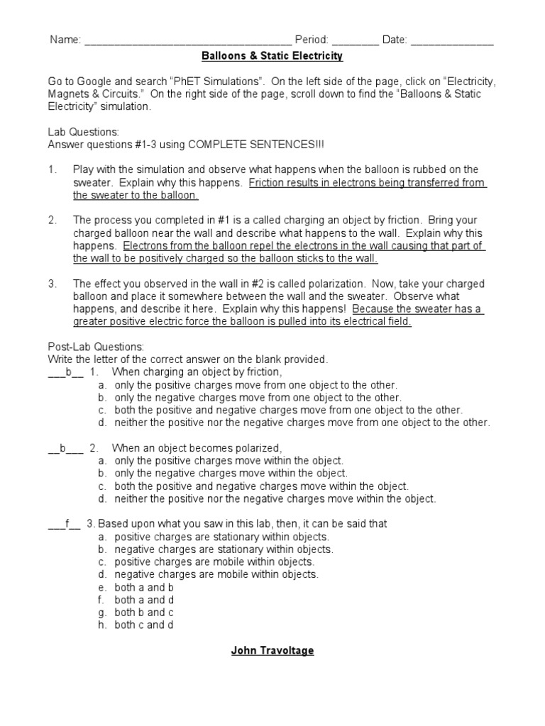 why this happens. (Use a COMPLETE SENTENCE!) The negative charges in John are