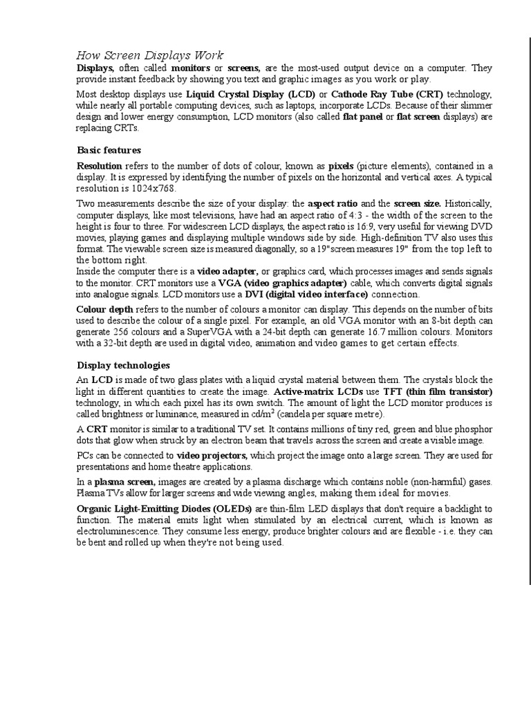 into analogue signals. LCD monitors use a DVI (digital video interface) connection.