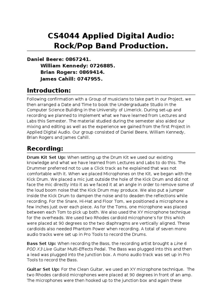 Applied Digital Audio. Our group consisted of Daniel Beere, William Kennedy,