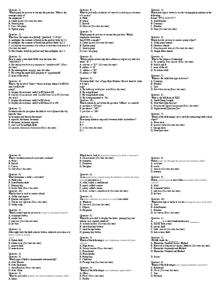 B) 8 And 1 Gb 16. When Entering Field Name, How Many Characters You Can B) Open Table, Click Sort Button On Database Toolbar, Choose