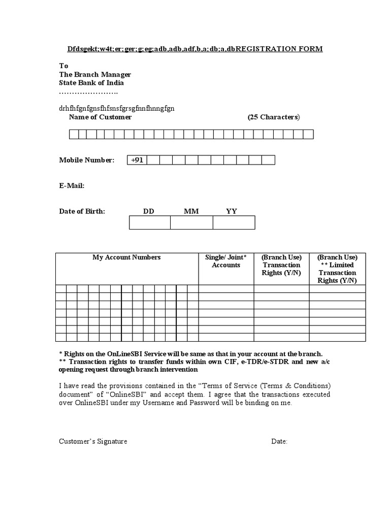 * Rights on the OnLineSBI Service will be same as that in your account at the branch.