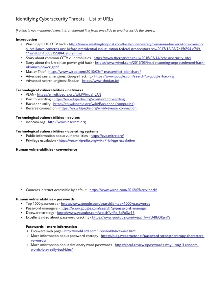 If a link is not mentioned here, it is an internal link from one slide to another inside the course.