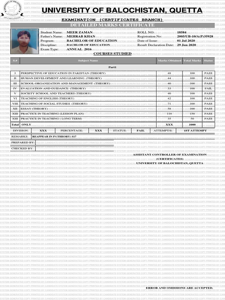 SYSTEM GENERATED COPY PRINTED BY CANDIDATE SYSTEM GENERATED COPY PRINTED BY CANDIDATE SYSTEM GENERATED COPY PRINTED OF BALOCHISTAN,
