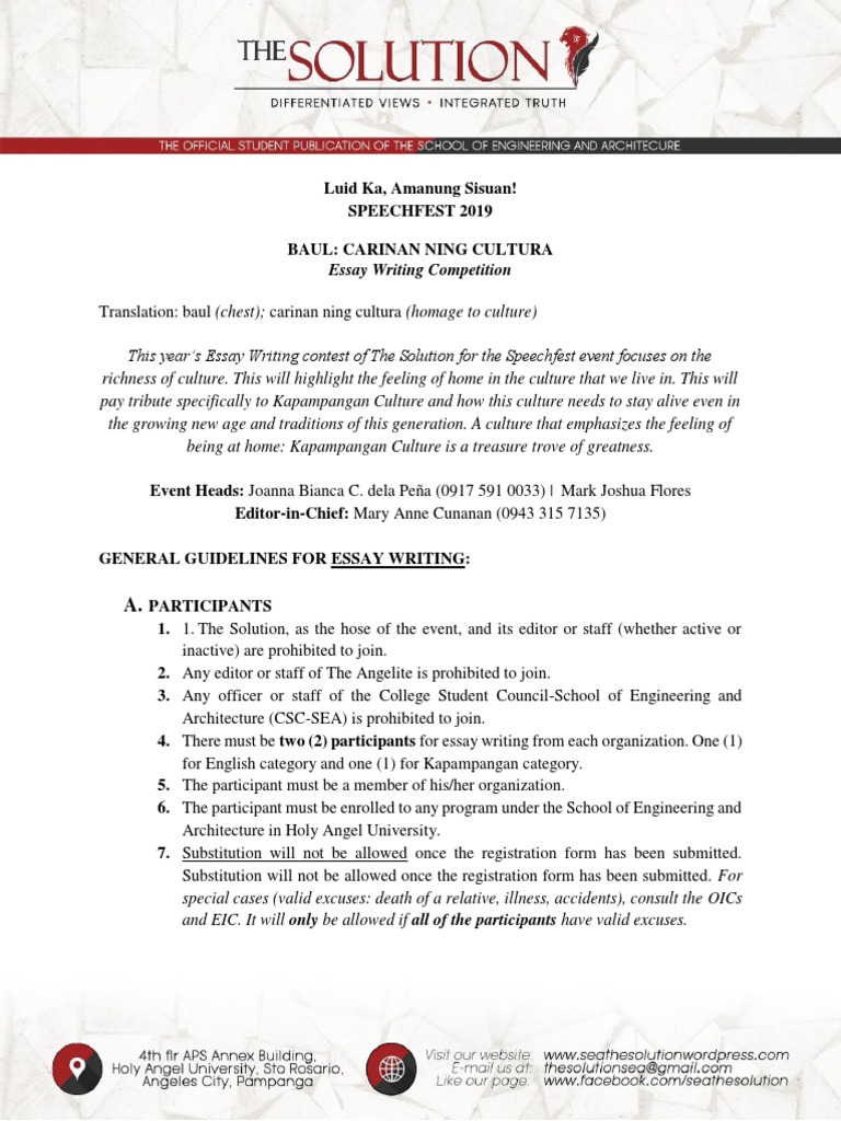 This year’s Essay Writing contest of The Solution for the Speechfest event focuses on the