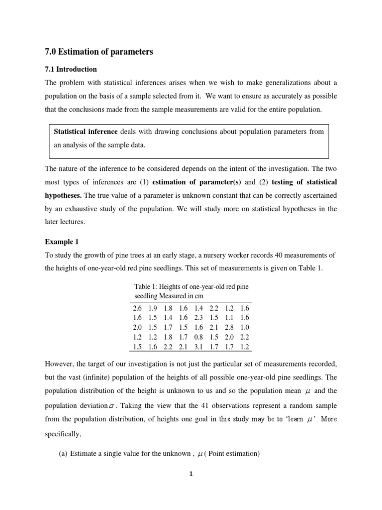 from the population distribution, of heights one goal in this study may be to ‘learn ’. More