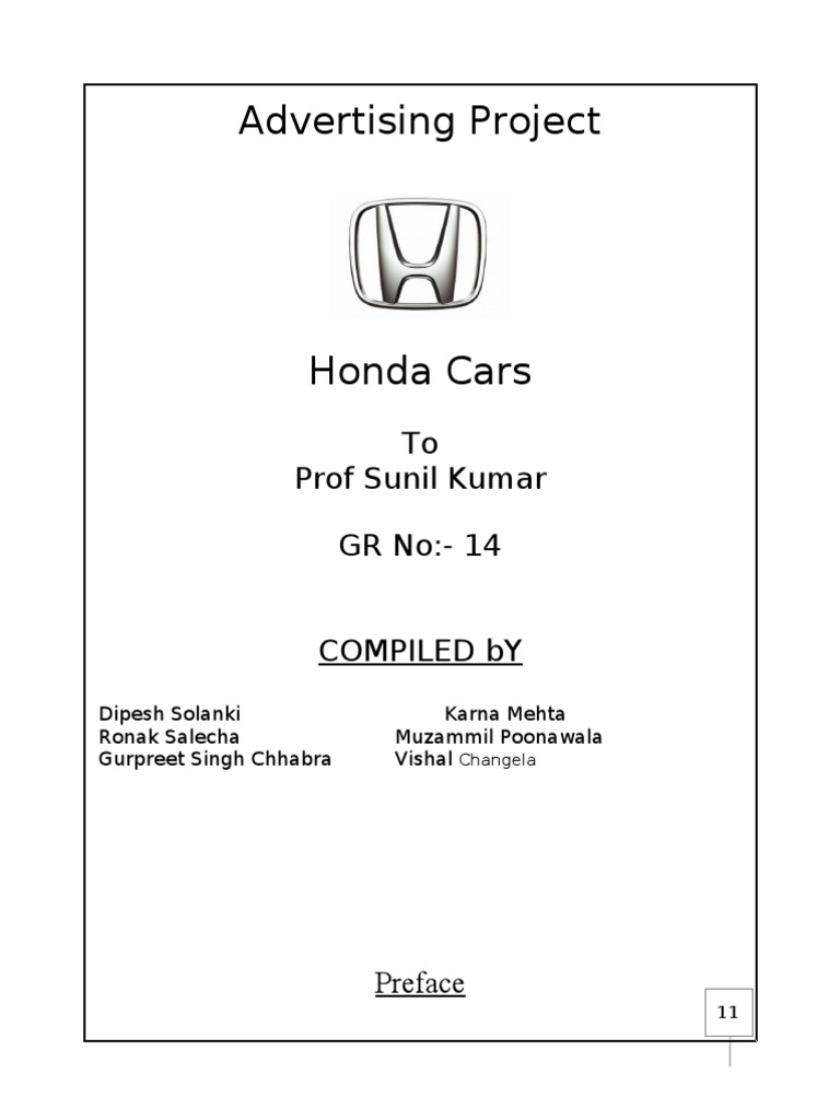 the final purchase decision for and against Honda. Our research on Honda tries to