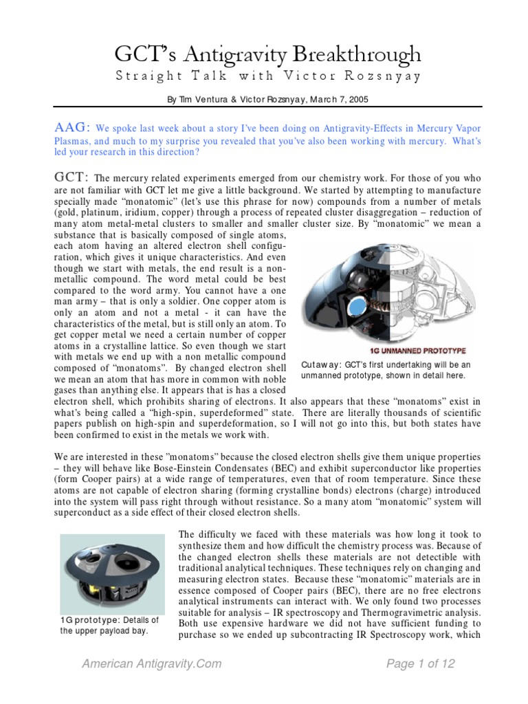 AAG: We spoke last week about a story I’ve been doing on Antigravity-Effects in Mercury Vapor
