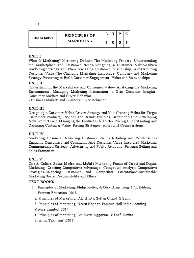 1. Principles of Marketing, Philip Kotler, & Gary Armstrong, 17th Edition,